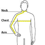 | Chest | 18 7/8 | 20 3/8 | 21 7/8 | 23 3/8 | 24 7/8 | 26 7/8 | 28 7/8 | 30 7/8 |